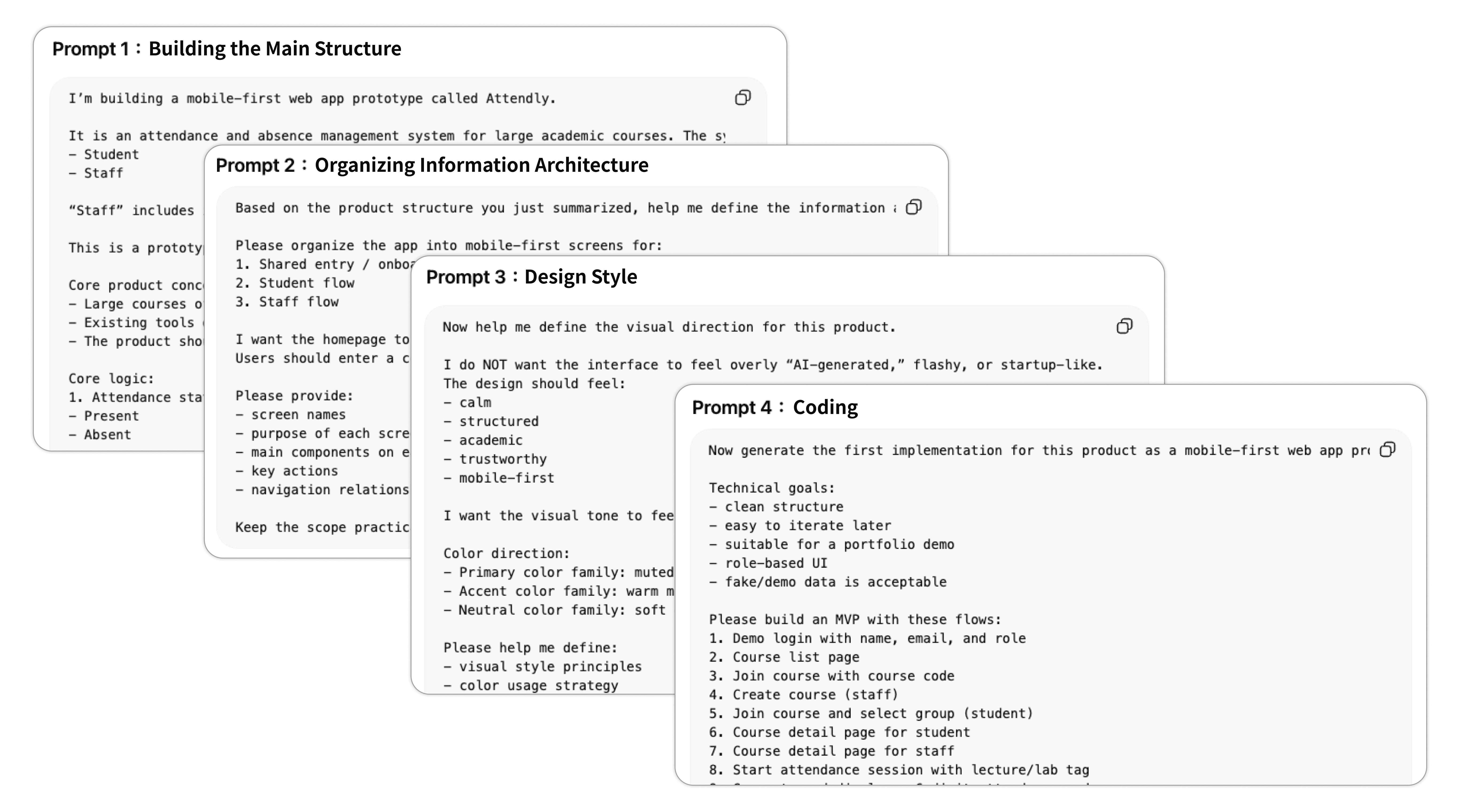 In AI-driven workflows, prompts are often the main (and sometimes only) input. However, they are frequently vague or one-off. Saying “build an attendance management system” versus specifying requirements, constraints, and flows leads to drastically different results, and significantly affects how easy it is to iterate afterward.