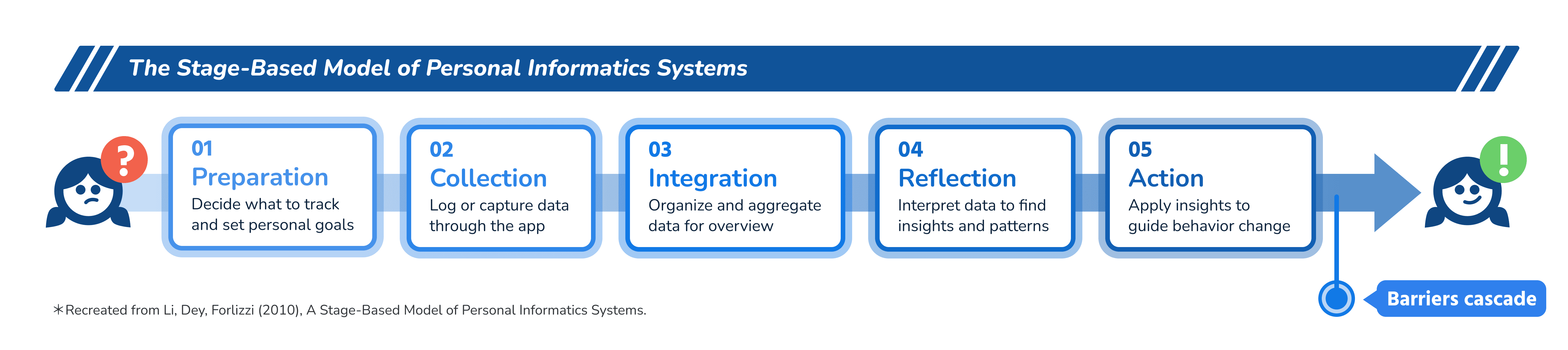 By situating the project within this model, I was able to assess MyFitnessPal not just as an interface, but as a system intended to support users across these different stages of personal informatics.