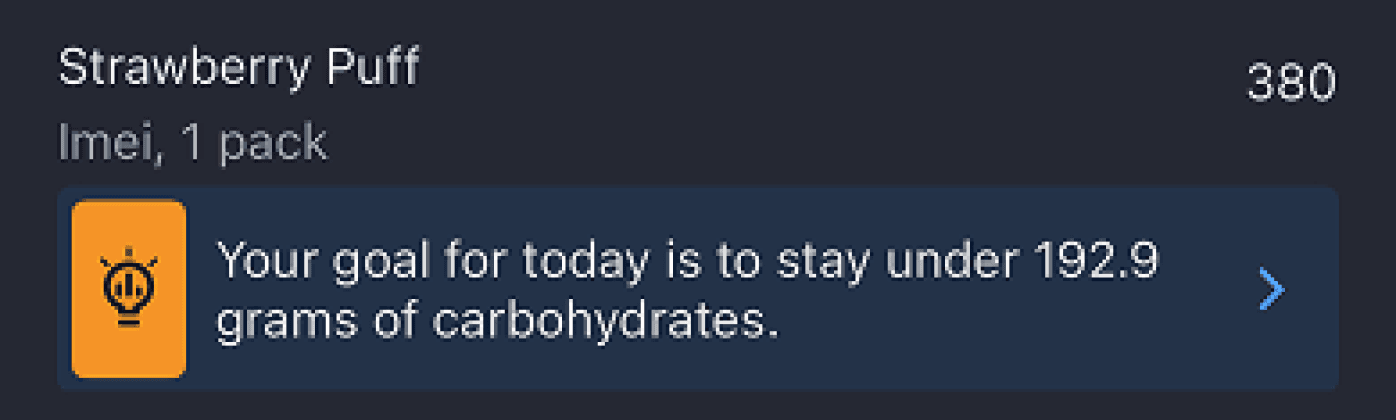 MyFitnessPal only restates generic daily targets (e.g., “stay under 192.9g carbs”), without showing how an individual food item contributes to those targets. This leaves users uncertain about what to adjust.